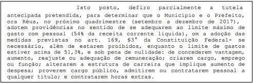 Ele não suspendeu a lei, mas mandou a prefeitura tomar medidas para deixar o gasto com pessoal dentro dos limites legais.