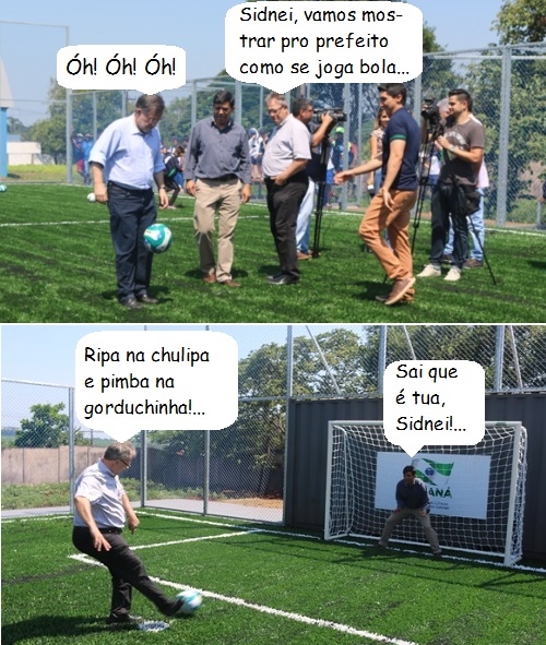 Olha aí mais cliques da inauguração da arena multiuso do colégio Vinícius de Moraes, no conjunto Cohapar. O prefeito Tauillo Tezelli não perdeu a chance de fazer uma embaixadinhas. Já os vereadores Edson Battilani e Sidnei Jardim brincaaram de pênaltis. E aí. foi gol ou não?...