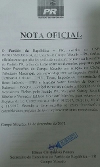 O PR se manifestou depois que filiado assinou ofício dizendo que o voto favorável podia caracterizar infidelidade.