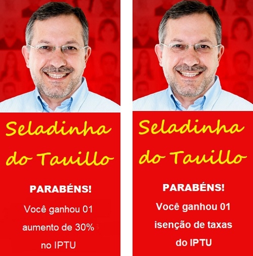 Pelo que se viu nos últimos dias, com a aprovação das mudanças no Código Tributário de Campo Mourão, o IPTU vai ficar parecendo a "seladinha" de Natal. Na seladinhha da Acicam, você pode ganhar uma passagem para o trenzinho, um vale-compra generoso ou até uma moto ou um carro 0 km. O IPTU será mais ou menos assim também, Só quando o carnê chegar é que você saberá se ganhou isenção, aumento grande ou aumento pequeno, Portanto, cruzem os dedos que vem aí a "Seladinha do Tauillo"...