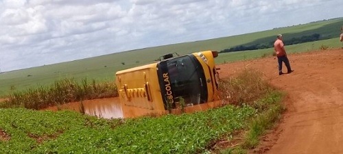 Ônibus da prefeitura de Goioerê que faz transporte escolar tombou nesta quinta-feira por volta do meio-dia. Foi perto da Vila Rural de Flor do Oeste. O veiculo ficou virado sobre uma área de contenção da água da chuva. Por sorte, ninguém se feriiu. A prefeitura não se manifestou sobre o acidente.