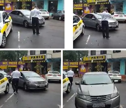 Vídeo que corre pelas redes sociais mostra cena curiosa no centro de Campo Mourão. Um homem tenta guardar vaga de estacionamento, mas motorista chega e buzina para estacionar no local. O homem ainda tenta argumenta que o carro só foi fazer a volta e está vindo, mas o motorista inisiste até que o homem desiste de ficar segurando a vaga. A cena é da rua Brasil, bem em frente à prefeitura. "Aqui é público, não existe isso de reservar vaga", diz o motorista depois de conseguir estacionar.