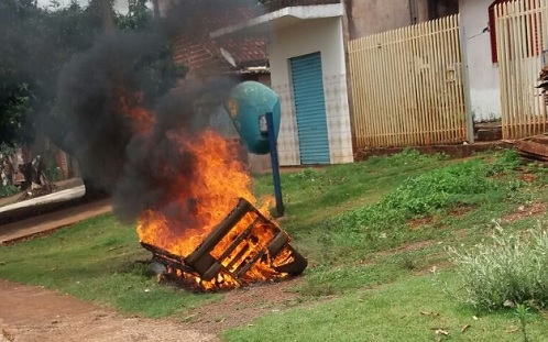 "Moradores jogam sofá na beira da calçada e ateiam fogo. Foi na entrada do Moradias Avelino Piacentini".