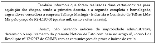 O Ministério Público arquivou a denúncia de dispensa de licitação da Codusa para compra em empresa da família do vice-prefeito.