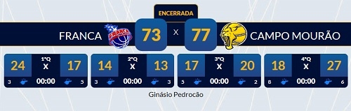 Foi a Franca/SP nesta segunda-feira e venceu, de virada, o forte time da casa por 77 a 73.