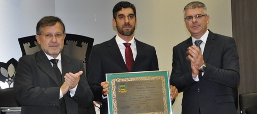 O promotor Luciano Rahal, que trabalha na comarca há cinco anos, é o mais novo Cidadão Honorário de Campo Mourão. O título foi entregue em sessão solene da Câmara realizada nesta quinta-feira. O prefeito Tauillo Tezelli e o vereador autor, Edilson Martins, fizeram a entrega. Oito pessoas discursaram. Entre elas, a deputada Cláudia Pereira. Outro promotor da comarca, Marcos Porto Soares, também já teve homenagem aprovada.