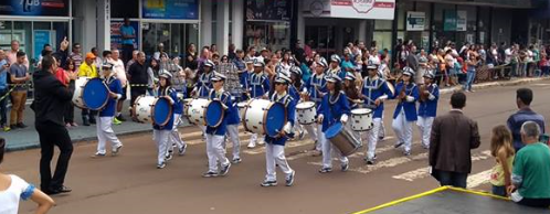 Durou pouco mais de uma hora o desfile deste terça-feira em comemoração aos 70 anos de Campo Mourão. Longo perto dos 15 miuntos que levou o melancólico desfile do ano passado, mas curto numa comparação com a "média histórica". Trinta entidades e instituições passaram pela avenida, mas em blocos pequenos e, digamos, "sem enrolações". São Pedro colaborou e não choveu. O tempo ficou nublado, sem o "solzão" tipico desta época do ano.