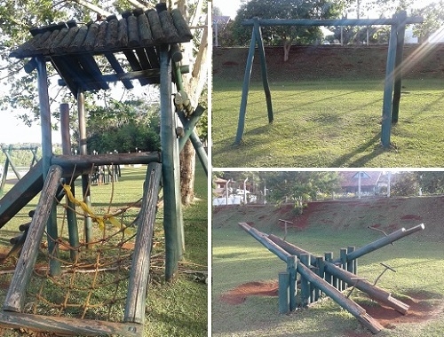 Tá tão feio o parquinho de madeira do Parque do Lago que até o vereador Sidnei Jardim, que é líder do governo, apresentou indicação na Câmara pedindo uma atençãozinha da prefeitura. Segundo ele, alguns equipamentos estão com a estrutura comprometida, inviabilizando a utilização e expondo as crianças ao risco.