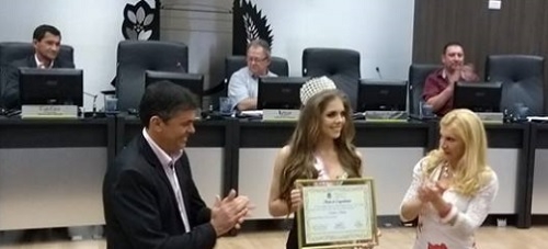 Sessão da Câmara de Campo Mourão sem homenagens não é sessão da Câmara de Campo Mourão. Nesta segunda-feira foi entrega a moção de congratulações à estudante Izadora Maitan, de 17 anos, que foi eleita Miss Teen Brasil. A moção foi entregue pela autora, vereadora Nelita Piacentini, e pelo vice-prefeito Beto Voidelo.