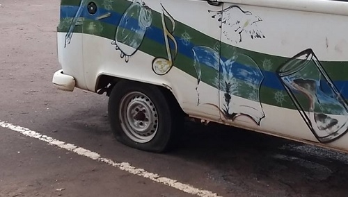 Carro no estacionamendo da prefeitura com o pneu furado não é mais exclusividade da gestão Regina Dubay. A Kombi que era da Fundacam e passou para outro departamento faz diz que está assim e fica ao lado da vaga reservada ao prefeito Tauillo Tezellli.