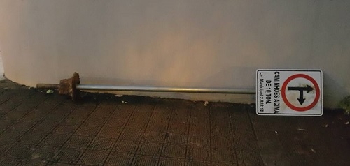 "Ação de vândalos. A placa está na av. Goioere esquina com a rua Sta Catarina".