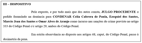 A ação criminal por compra de votos na Câmara de Campina da Lagoa condenou outras três pessoas além da ex-prefeita.