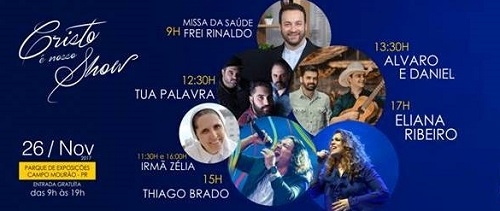 3) Domingo, no Parque de Exposições, tem o tradicional "Cristo é nosso show". Começa às 9h com missa da saúde celebrada pelo frei Rinaldo. Às 11h30 acontece pregação com irmã Zélia. A programação vai até às 19h, incluindo shows musicais. A entrada é franca.
