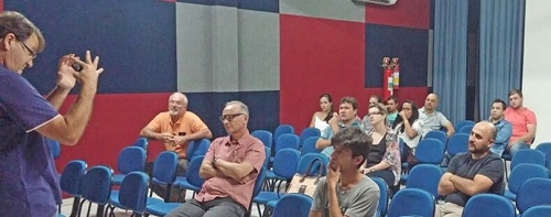 Jadir Pepita (PPS), vereador em Campo Mourão, concordando com o colega Miguel Ribeiro (PRB), que os pedidos dos vereadores não são atendidos pela prefeitura, mesmo quando feitos por "nobre edil" do mesmo partido do prefeito Tauillo Tezelli; em sessão da Câmara, semana passada.