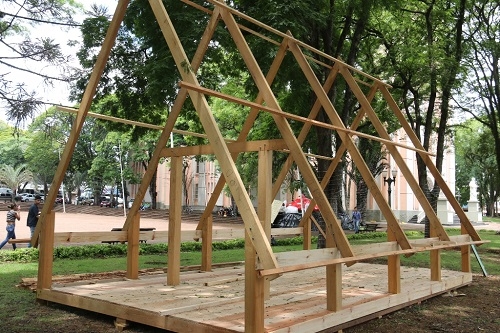 Uma das novidades do Natal deste ano em Campo Mourão é que a casa do Papai Noel será reutilizável. O projeto foi desenvolvido por alunos do curso de engenharia civil da UTFPR. O trabalho fez parte de matéria específica do curso referente a estrutura em madeira e planejado de forma a reutilizar o material nos próximos anos. Não haverá pregos, por exemplo. A casa será dividida em cozinha, quarto e sala, decorada com poltrona, lareira e a árvore de Natal. O custo ficou em R$ 6 mil.