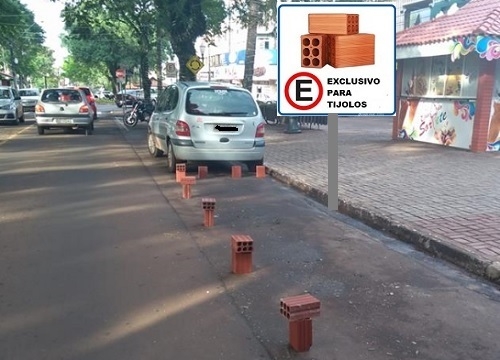 Sexta-feira, às 8h30. Tijolos reservam vaga de estacionamento no calcadão, centro de Campo Mourão. Nada que uma "placa virtual" de Boca Santa não regularize a situação.