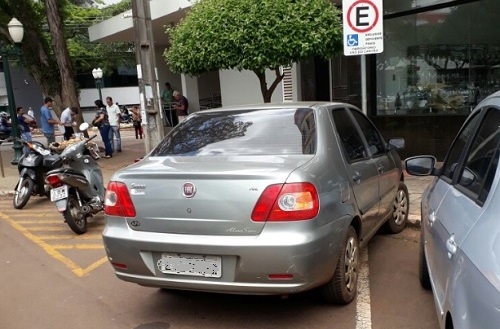 "Sem carteirinha para a vaga especial e ainda e mal estacionado. Na rua São Paulo, em frente ao Banco Itaú".