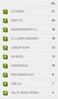 O líder é o União de Francisco Beltrão, com 31 pontos.