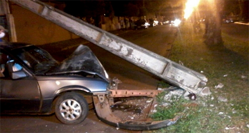 Os postes continuam atrapalhando a vida de parte dos motoristas de Campo Mourão. Desta vez nem foi um poste republicano. O condutor do Monza deu de cara com um postão de concreto da av. Jorge Walter, nas proximidades do supermercado Muffato. Destruiu o veículo e ainda derrubou o poste.