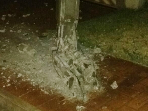 “De quinta para sexta-feira, às 4h30, na rua São José, centro de Campo Mourão. O cara bateu no poste com um Focus, deu ré e foi embora. Não sei como, porque o estrago foi grande”.