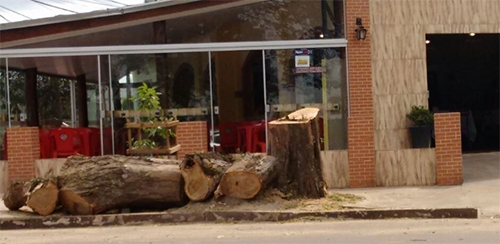 “Na av. Irmãos Pereira, mais uma árvore cortada nesta tarde de sábado”.