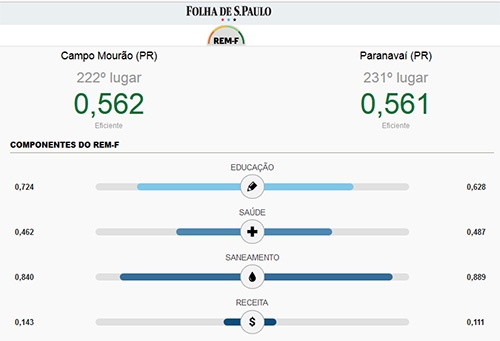 No portal UOL dá pra brincar de “Cidade X Cidade” com o Ranking de Eficiência dos Municípios elaborado pela Folha de S. Paulo. Boca Santa comparou Campo Mourão com Paranavaí e essa a gente ganhou. Portanto, 1 a 0 pra “nóis”...