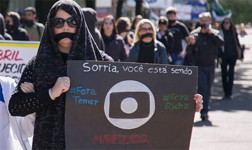 Um grupo de manifestantes encerrou o defile em Campo Mourão aos gritos de “Fora Temer!” e “Fora Beto Richa”. Também levaram faixas com essas palavras de ordem. Não faltaram ainda faixas chamando Márcio Nunes de “deputado do camburão” e “traidor do povo”. Além disso, reapareceu o cartaz que chama Márcio e Douglas Fabrício de “inimigos da educação”.