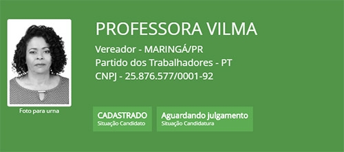 Quem disse que a Professora Vilma não é mais candidata a vereadora? Olha ela ali! Mas se você olhou bem já percebeu que essa aí é “outra Vilma”. É professora e é do PT, mas é outra. A candidata acima é de Maringá. A “Professora Vilma mourãoense” é uma dos três vereadores de Campo Mourão que não vão para a reeleição. E o PT local lançou apenas um vereadorável.