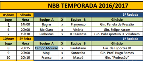 Saiu a tabela oficial da temporada 2016/17 do NBB, a primeira divisão do basquete brasileiro.