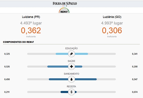 O quadro “Cidade X Cidade” compara Luiziana, na região de Campo Mourão, com Luziânia, em Goiás. Segundo o Ranking de Eficiência dos Municípios, da Folha de S. Paulo, a “nossa” Luiziana é melhor, 500 posições à frente da cidade goiana (4.493º x 4.993º). Em São Paulo existe uma “Luiziânia” e, desta, a Luiziana paranaense perde. A cidade paulista ficou cerca de 3,8 mil posições à frente (720º lugar). Portanto, 1 a 1...