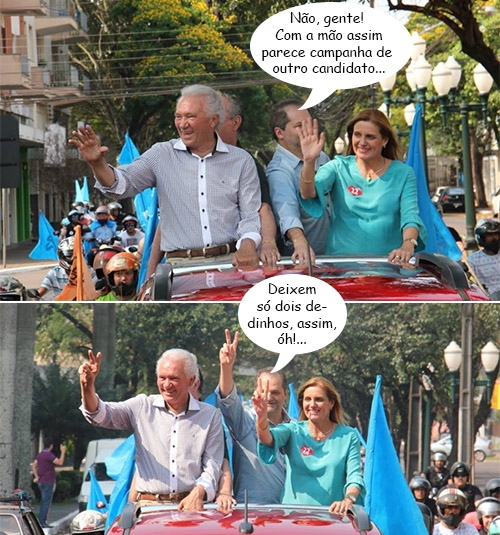 Os cliques são deste sábado à tarde, quando a campanha da candidata Regina Dubay realizou carreata por Campo Mourão. Puxando a fila, Regina, o candidato a vice Nelson Tureck, o ex-vice Moacir Porciuncula e o empresário Osni Menezes. E cuidado pra não fazer o gesto do adversários, hein?...