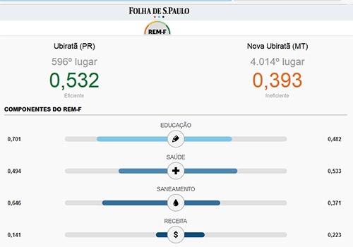 A série “Cidade X Cidade” chega a Ubiratã. Afinal, qual é melhor: Ubiratã, na região de Campo Mourão, ou Nova Ubitatã, no Mato Grosso? A concorrente não deu nem pra largada. Segundo o Ranking de Eficiência dos Municípios, da Folha de S. Paulo, a “nossa” Ubiratã ficou na 596ª posição no País, enquanto a “nova” não passou da 4.014ª colocação. Tadinha...