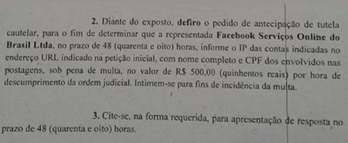 A Justiça Eleitoral deu 48 horas para que o Facebook informe os dados dos responsáveis pela página “Campo Mourão Revelada”.