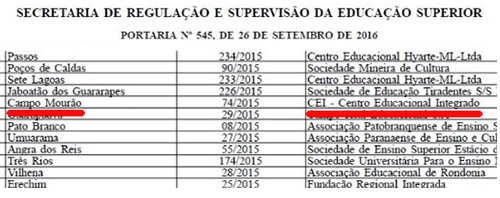 A publicação oficializa o curso para a faculdade Integrado, de Campo Mourão.