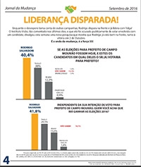 No programa eleitoral da TV desta terça-feira, Rodrigo Salvadori divulgou pesquisa em que lidera as intenções de voto.