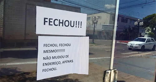 Estabelecimento comercial encerrou as atividades, no centro de Campo Mourão, e deixou um recado inusitado na porta. É para deixar claro que o atendimento não foi para outro endereço, não. “Fechou mesmo!”, destaca o aviso em ponto da av. Manoel Mendes de Camargo.