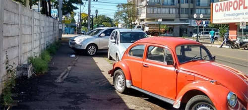 A guia rebaixada de um antigo posto de combustíveis continua enganando muito motoristas na hora de estacionar na rua Araruna, perto da av. Capitão Índio Bandeira. Um carro ficou atravessado na calçada e o Fusca ficou no “meio termo”. Só o veículo ao centro estacionou corretamente no local.