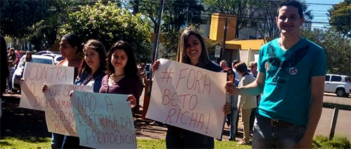 Professores, funcionários e alunos da Unespar de Campo Mourão participaram nesta quinta-feira pela manhã de paralisação. Foi um protesto contra o “desmonte do serviço público” que estaria sendo articulado pelo governo Michel Temer, como as anunciadas reforma da Previdência e trabalhista. Também sobrou par ao governador Beto Richa. Nas escolas da rede estadual não houve paralisação, mas as aulas foram reduzidas de 50 para 30 minutos.