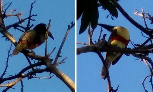 “Os tucanos estão invadindo as cidades da região. Depois de Altamira do Paraná, desta vez echegaram a Engenheiro Beltrão, Já faz alguns dias que estão sobrevoando a av. Zacarias de Góis. pelo jeito é um casal, mas só consegui fotografar esse”. Amarildo