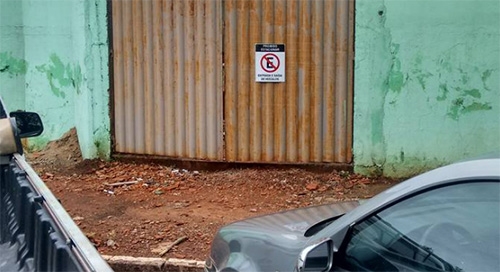 “Proibido estacionar. Entrada e saída de veículos”. É o que diz a placa coloca em portão nos fundos do Clube 10 de Outubro, na rua São José. Como a guia não é rebaixada no local, a maioria dos motorista estaciona com placa e tudo”.