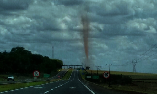 “Tornadinho perto da praça de pedágio de Floresta, na PR-317, entre Campo Mourão e Maringá, por volta das 15h deste domingo”. Mateus Rodrigues Gozer