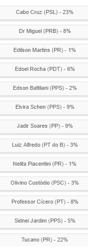 Dr Miguel (PRB) e Professor Cícero (PT) tiveram 8% cada.