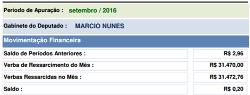 O mourãoense Márcio Nunes teve gastos de R$ 31.472,76.