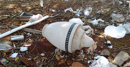 O que a luminária de poste republicano está fazendo, jogada, num terreno baldio da rua Brasil, entre as avenidas Irmãos Pereira e José Custódio de Oliveira?