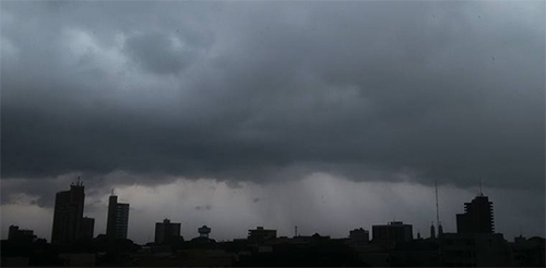 Vista de Campo Mourão, às 10h30 desta quarta-feira. Choveu forte logo em seguida. Segundo o Simepar o feriado de Finados terá chuvas com trovoadas à tarde e à noite. Na quinta-feira o tempo fica parcialmente nublado, com chuvas e trovoadas. A previsão é de chuvas ocasionais até domingo. As temperaturas vão variar de 12 graus (sábado) a 28 graus (domingo).