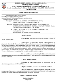 O prefeito de Quarto Centenário, Reinaldo Kranchinski, entrou com ação para anular a rejeição das contas dele de 2006.