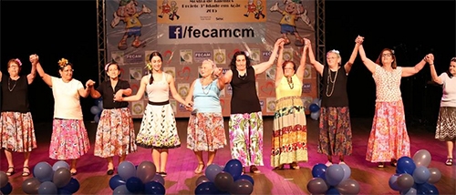 Teve Mostra de Talentos da Terceira Idade neste domingo no Teatro Municipal. Promoção da Fecam e da Secretaria de Ação Social. Mais de 120 integrantes do projeto Terceira Idade em Ação, de grupos do Centro de Convivência do Idoso e do Sesc participaram. Nessa mostra, menor de idade não entra, viu?...