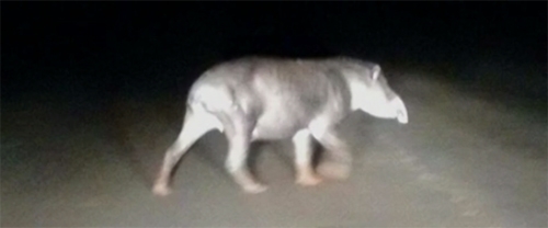 Na foto, mostrada na RPC/Globo, a anta conseguiu escapar.