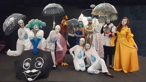 Trata-se do infantil “Eu chovo, tu choves, ele chove”, do grupo Trapos – Núcleo 5.
