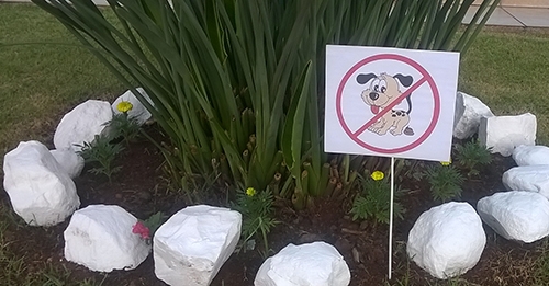 Tem gente que sair passear com seus cãozinhos e usam os jardins que encontram pelo caminho como banheiro dos bichos. A escola Educare, na av. Goioerê, deu um jeito nisso. Colocou placas no jardim alertando a proibição. O cachorro pode até não entender a sinalização, mas para o dono dele mais claro impossível, né?...